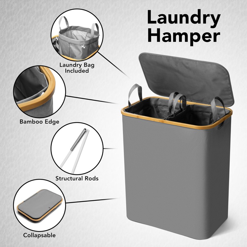 - DURABLE AND PREMIUM QUALITY MATERIALS - The Luxe Laundry Premium Laundry Hamper is made out of a thick high quality cloth and a bamboo lid which is very lightweight and easy to carry. This also come with 4 high quality rod that support the inside and made the Laundry Baskets strong and sturdy. The Luxe Laundry Premium Laundry Basket Organizer comes with two sylish color Grey and Black.