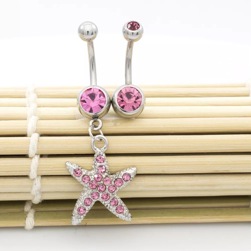 Luxe Modz Pack of two Navel Ring with Cubic Zirconia Star Design 14g
