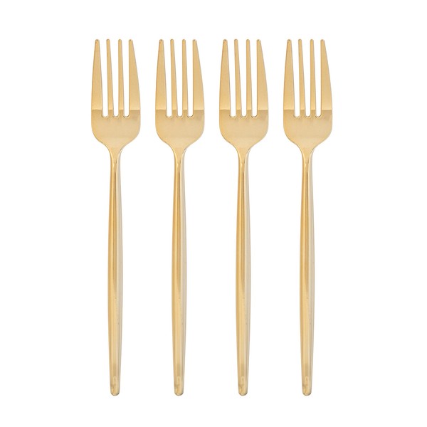 Luxe Party 240 Pieces Premium Plastic Disposable Forks | Matrix Collection | Solid | Full Size | Metallic Silverware | Smooth Finish | Gold
