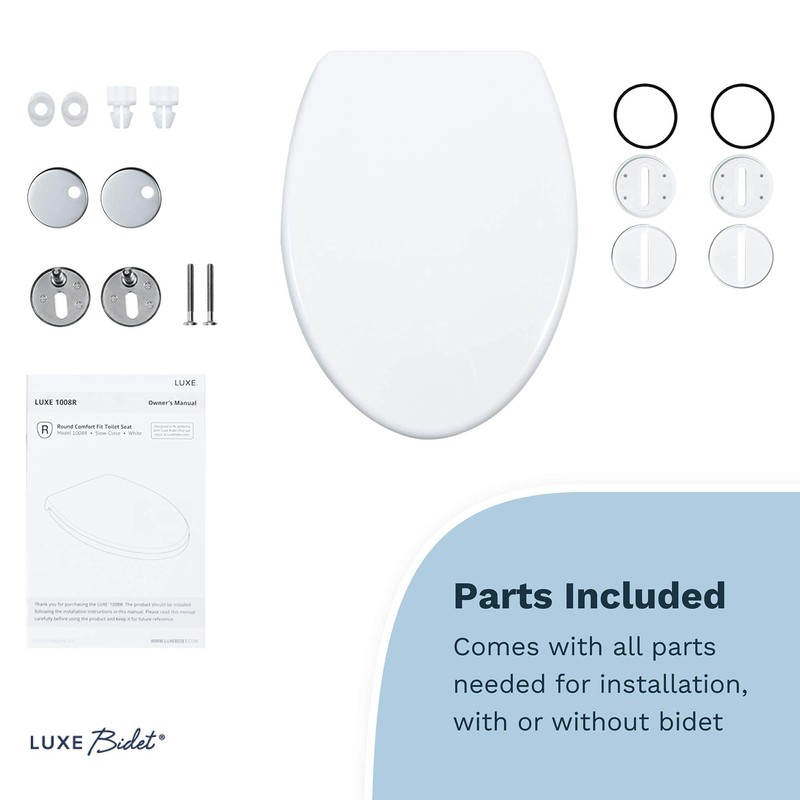 - High Quality Parts – Built with durable plastic and withstands up to 300 lb. Customized hardware holds both toilet seat and Luxe bidet attachment securely in place. Non-slip bumpers prevent shifting and sliding.