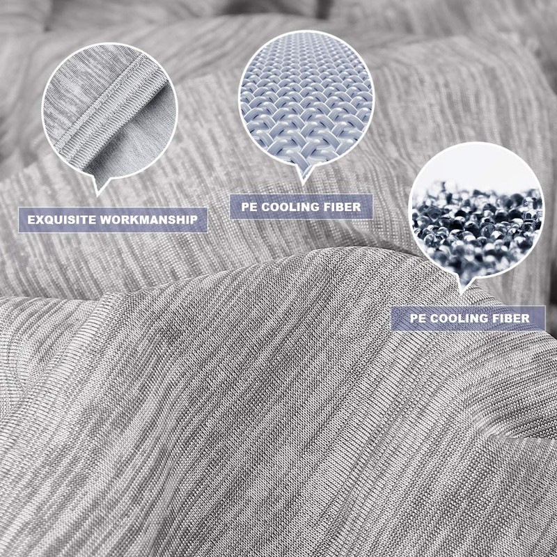 - ❄️DOUBLE SIDED DESIGN: Special 80% mica nylon and 20% PE cool fabric on the top side make the cool quilt blanket feel comfortable, breathable and cool in hot summer use. Natural 100% cotton on the bottom inside is suitable for spring&autumn use. Help for night sweat and hot sleeper keep cool and dry all night.