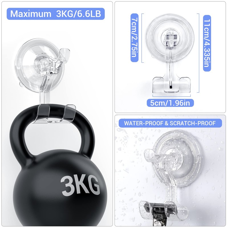 - WIDELY USED ON SMOOTH SURFACE: The powerful suction cup shower razor holder can hold up to 3kg /6.61lb. You can hang towel, loofah, sponge, bathrobe on the suction shower hooks ; hold Spoon, washcloth, apron on the kitchen towel hooks.
