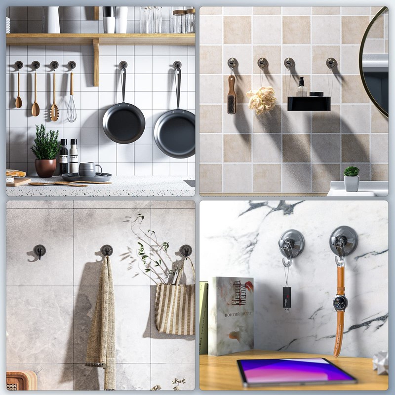- 【WIDELY USE ON SMOOTH SURFACE】 — These powerful suction cup hooks can hold up to 6.61 pounds. You can use these heavy duty suction hanger to hang Christmas Wreaths on outdoor or indoor, and towels, loofahs, sponges, or bathrobe (even in a tiled shower!) — to hold utensils, washcloths, or aprons in the kitchen — or organize hats, coats, jewelry, bags, or decorations in your bedroom.