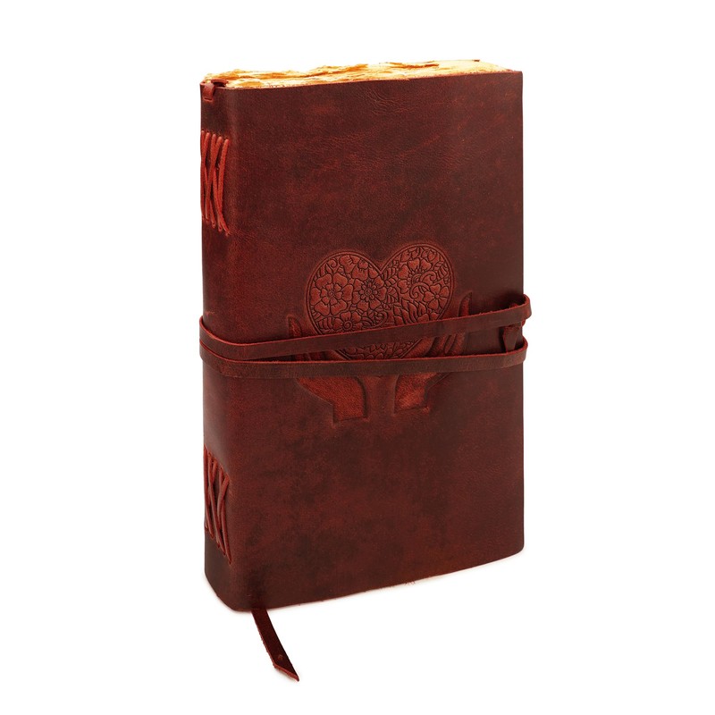 LUXEORIA Heart Journal for Women and Men, Handcrafted Leather Journal for Writing Womens, Leather Sketchbook, Travel Diary with Unlined Deckle Paper, Wine Red 8x13