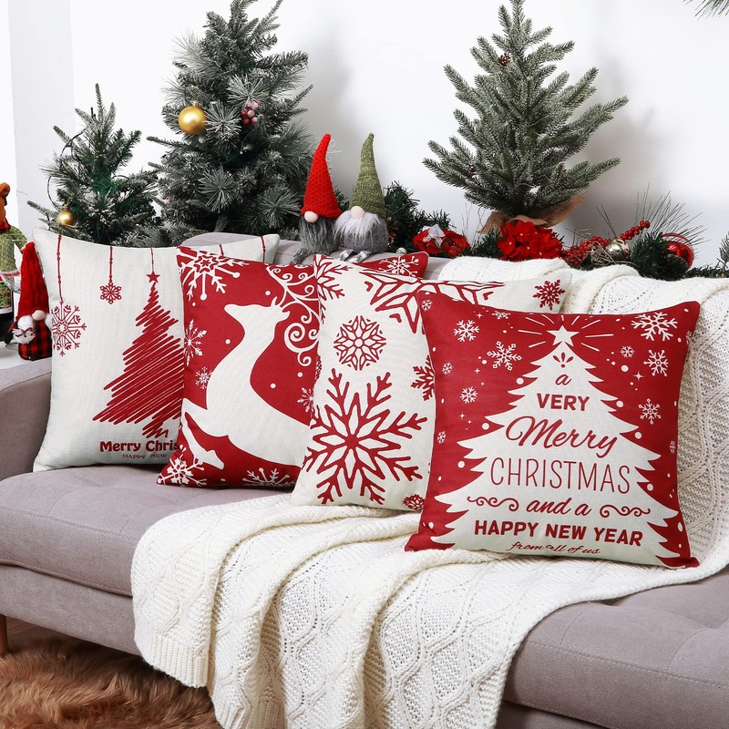 - Beautiful design: 4 pack different classic Christmas designs, Christmas socks deer and tree, beautiful pattern and invisible zip design, which makes it look more beautiful and decorative. The print on the cushion cover is very clear and vivid. The colours are very rich and vibrant. Our delicate cushion covers are sure to add freshness and vitality to your cosy home and win the impressions of your guests.