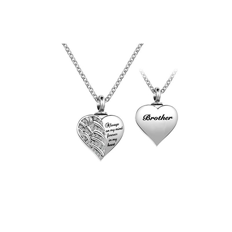 LuxglitterLin Guardian Angel Wings Cremation Jewelry for Ashes Heart Crystal Urn Necklaces for Brother Ashes Memorial Keepsake Necklace Always on Mind Forever in My Heart