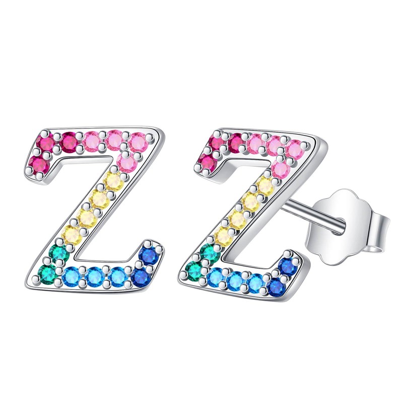 - Design Idea: With its stunning presentation of the letter 'Z', these sterling silver earrings showcase impeccable craftsmanship. Wear it alone as an initial or combine it with other letters to spell out important words. These delicate stud earrings with pave rainbow cubic zirconia, sparkle and are elegant, perfect for every day.