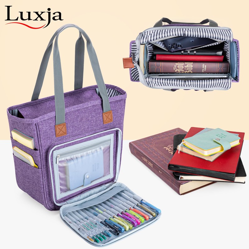 LUXJA Bible Bag with Multiple Pockets for Bible Study Items, Bible Case Tote for Women, Purple
