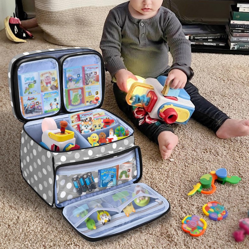 - LARGE STORAGE CAPACITY: Main compartment with 3 detachable padded dividers to organize little tikes projector, stories and characters. The top section with 2 detachable clear zipper pockets for storing little tikes projector story books.