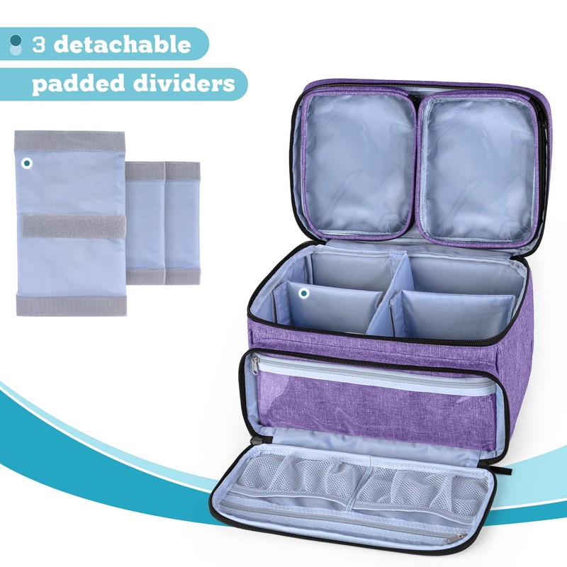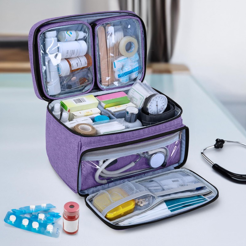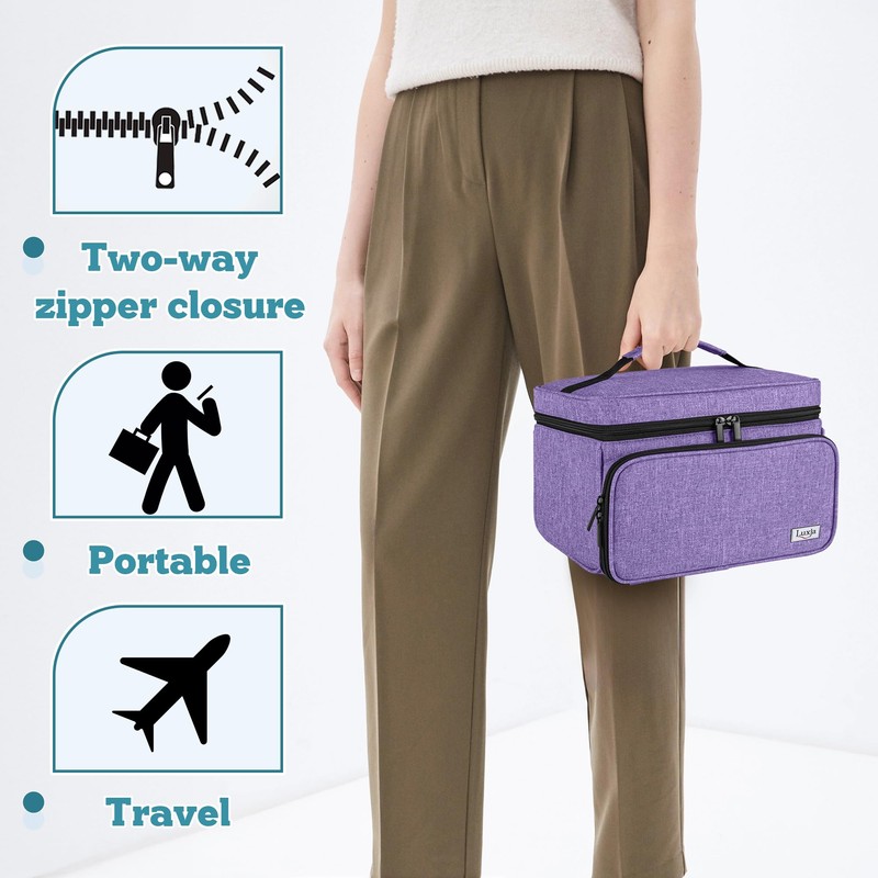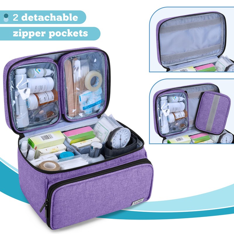 Luxja Medicine Bag with 2 Detachable Clear Pouches, Pill Bottle Organiser with Detachable Dividers (Suitable for Home or Travel Use), Purple