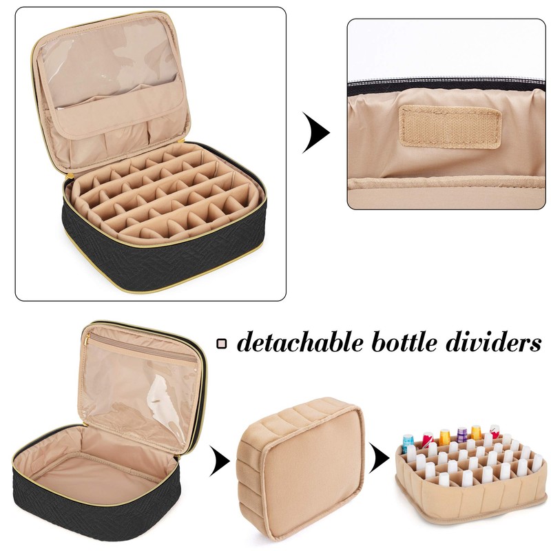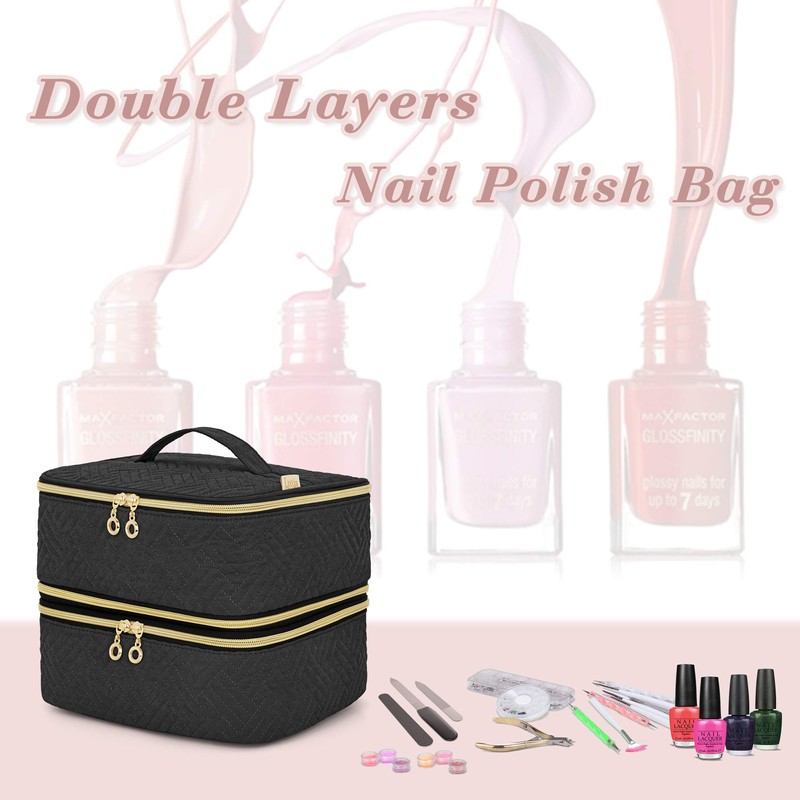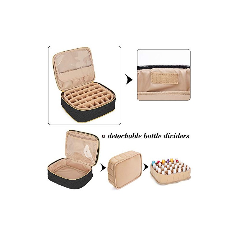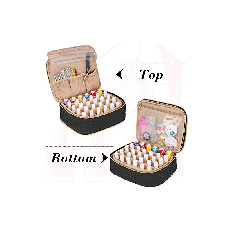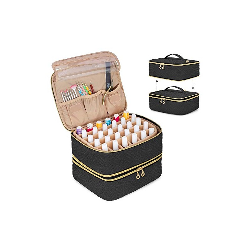Luxja Nail Polish Organiser Case, Detachable 2 Layers Nail Varnish Case - Hold 60 Bottles (15ml - 0.5 fl.oz), Nail Varnish Storage Bag (Patented Design), Black