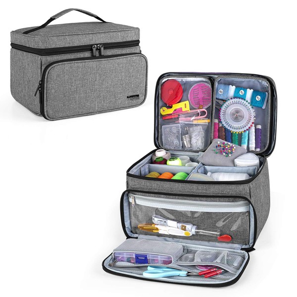 Luxja Sewing Bag, Sewing Bag, Bag Only, Sewing Tools, Storage, Portable, Large Capacity, Many Pockets, Gray