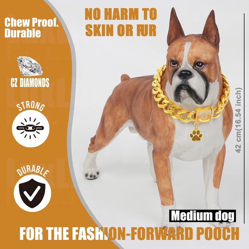 The Collar is coated with 5 layers 18k gold and 5A Grade CZ Diamond, It is your dog's Jewelry, not Just a Collar.