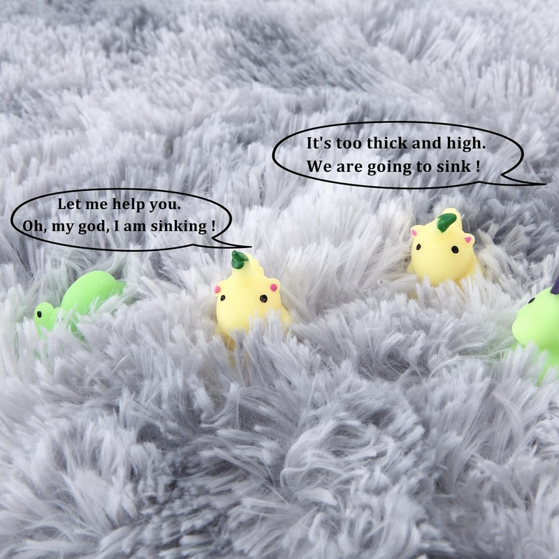 - Premium Material: Our area rug was designed to last for years to come! This extremely soft fluffy rug is made of 3 layers of high quality material. The shag rug surface is covered with 1.6" velvet faux plush high pile for warmth and beauty. The fuzzy rug also features an ultra-soft foam middle layer and a non-slip base. 400 GSM high-density shag carpet surface(total about 650GSM with bottom), our area rug is incredibly soft and comfortable.