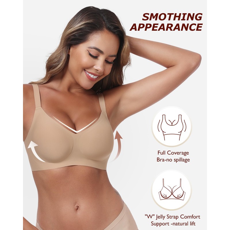 - 【W-Shaped Jelly Support System】: Ditch uncomfortable wires! Our seamless support bras for women have innovative W-shaped jelly bands replace traditional underwire, offering gentle yet secure lift without digging into skin. The anti-roll silicone strips along the underband stay firmly in place during yoga sessions or long workdays. Experience wire-free support that actually stays put - no more annoying all-day adjustments
