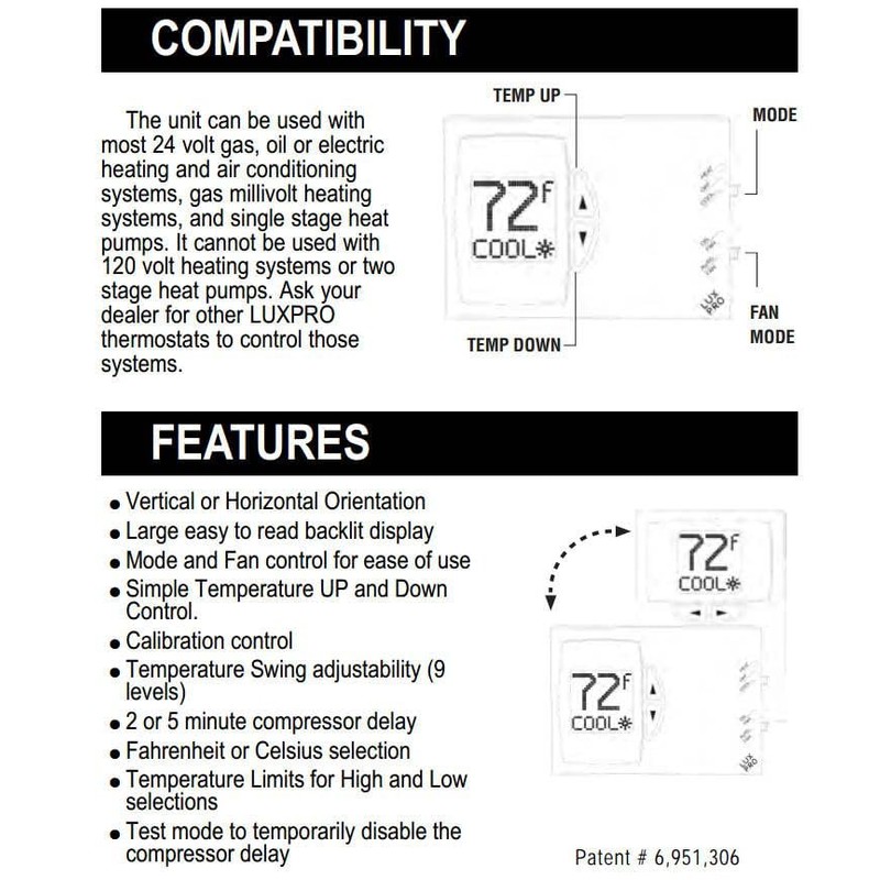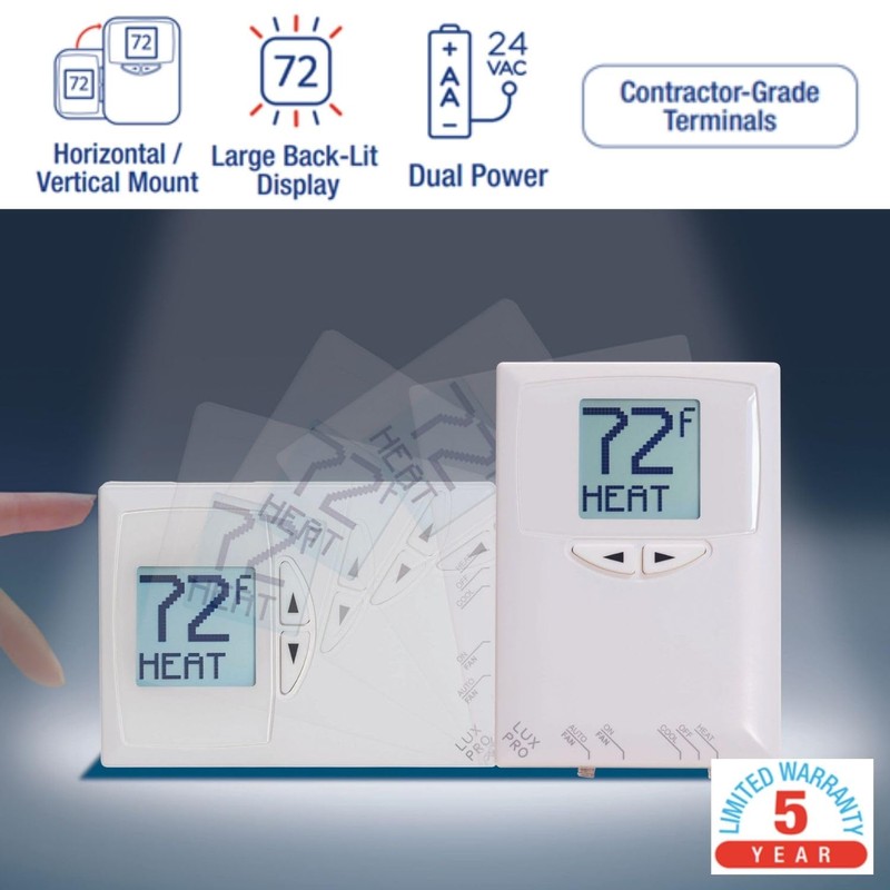 Lux Pro PSD111B Non-Programmable Thermostat for Home Use; 1 Heat, 1 Cool