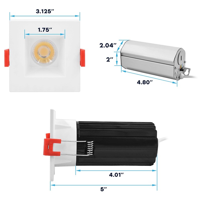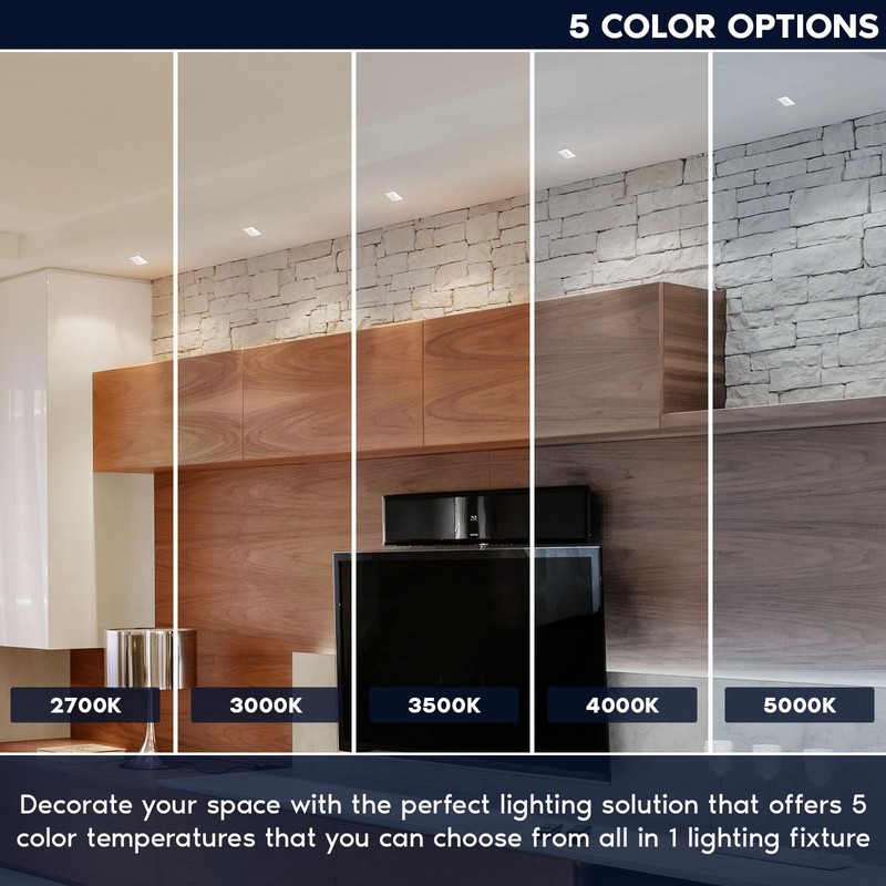 • 5 COLOR OPTIONS - Each 2 inch recessed lighting fixture has a simple to use switch that can change your lights to 2700K warm white, 3000K soft white, 3500K natural white, 4000K cool white, or 5000K bright white. Your home accent recess lights will be adjustable through 5 cct color temperatures until you find the perfect light to select for your space.