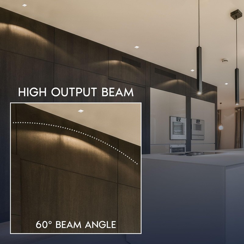 • DIMMABLE - Adjust the brightness of each retrofit LED recessed lighting fixture with the ability to dim from 100-10% lighting output. Set your accent lighting according to your mood and take delight in a pleasant atmosphere every time. Enjoy an improved color quality experience with each fixture since these mini recessed lights have a CRI 90 rating for improved lighting.