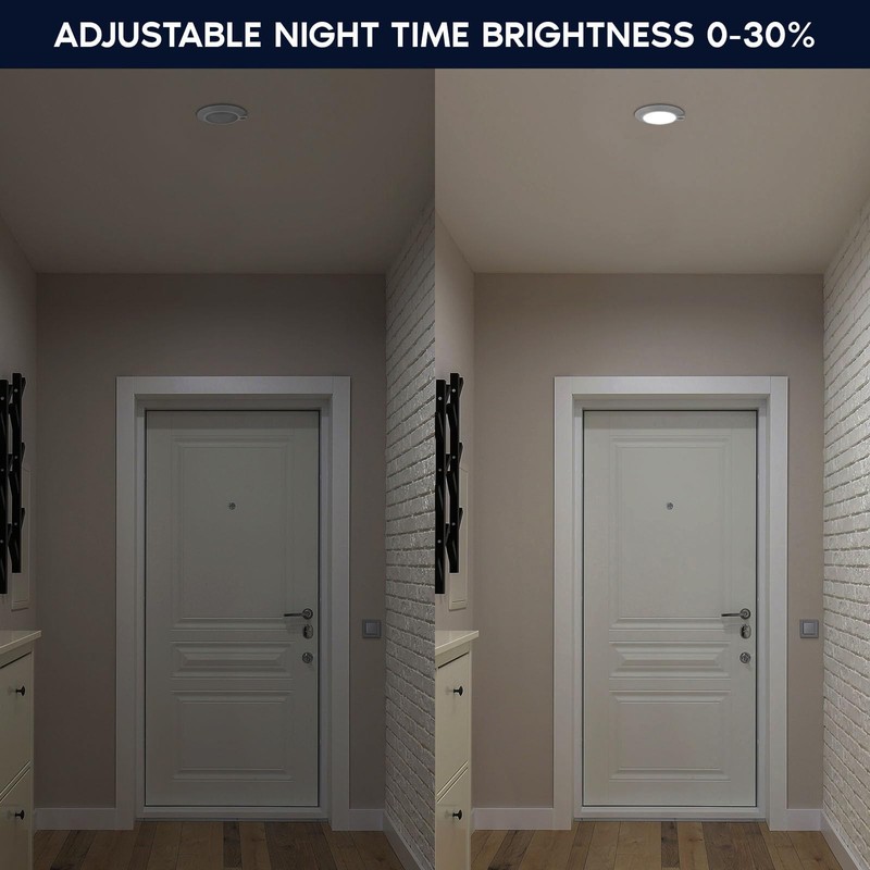 - ADJUSTABLE TIMER - Each slim LED ceiling light has a timer you can adjust to control how quickly the light goes off when it doesn't sense motion. Regular motion sensor lights turn off after 30 seconds, but you can set it to turn off instantly or stay on for up to 5 minutes when there's no movement. Customize it the way you like and set the time based on your frequency of use. There is also a secondary tunable switch which will keep the shutoff illumination from 0-30% brightness.