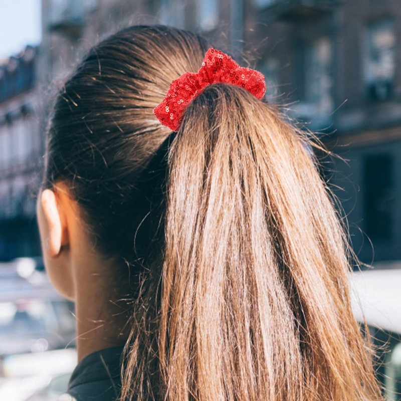 Luxshiny Christmas Hair Scrunchies 2pcs Shiny Sequin Hair Scrunchies Hairbands Elastic Hair Bands Hair Ropes Stretchy Hair Ties Ponytail Holder, Christmas Hair Accessories for Women Girls