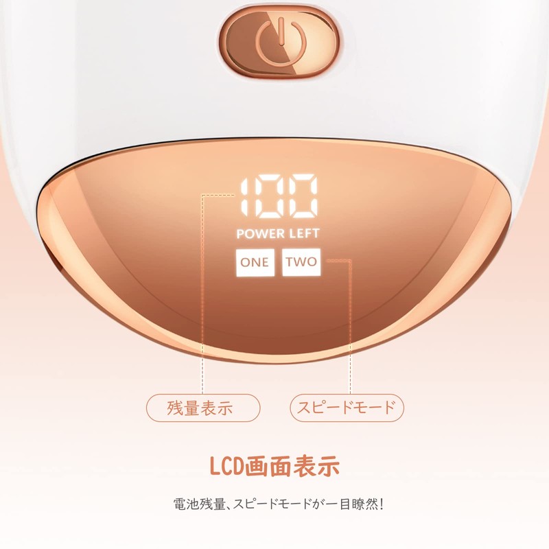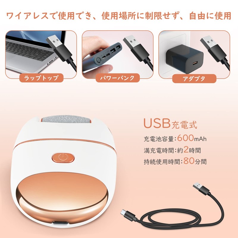 - 「LCD残量表示&LEDライト付き」 LCDディスプレイが設置され、電池残量、回転速度は一目瞭然で、電源が急に切れる恐れがありません。従来の商品より小柄でおしゃれな設計を取り上げ、女性の手になじみやすい軽量仕様で、外出、旅行、出張などの時は気軽にバッグに入れられ、いつでもどこでも使用できます。照明ライトが付いており、薄暗い環境でも本格の足裏角質ケアできます。