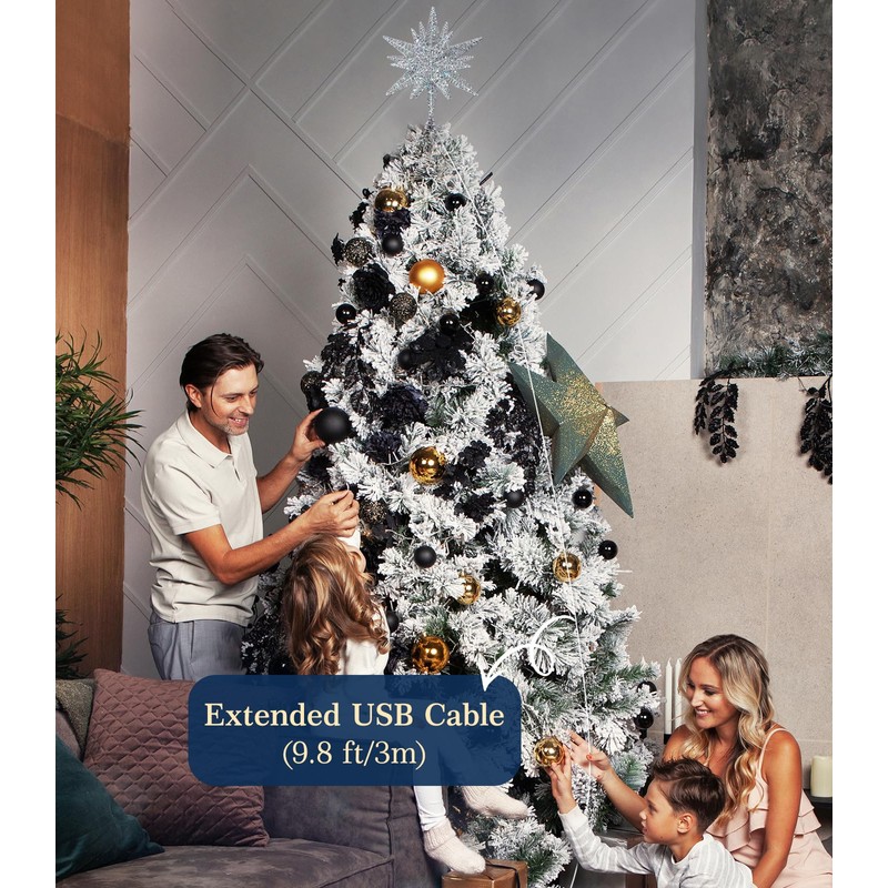 - 【Longer USB Cable & Remote Control】The USB plug in version is more convenient than the battery version without frequent replacement of battery, and the USB cable is 9.8 ft long, long enough to reach the ground and connect the plug. Also, the Luxspire tree topper is equipped with a remote control, which allows you to freely adjust the 4 brightness levels and 8 lighting modes at the push of a button, making Christmas decorations even more fun.