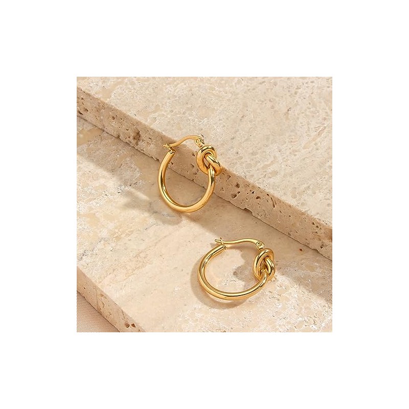 LUXSTAR Knot Small Hoop Earrings, Stainless Steel, Hypoallergenic, Binaural S...