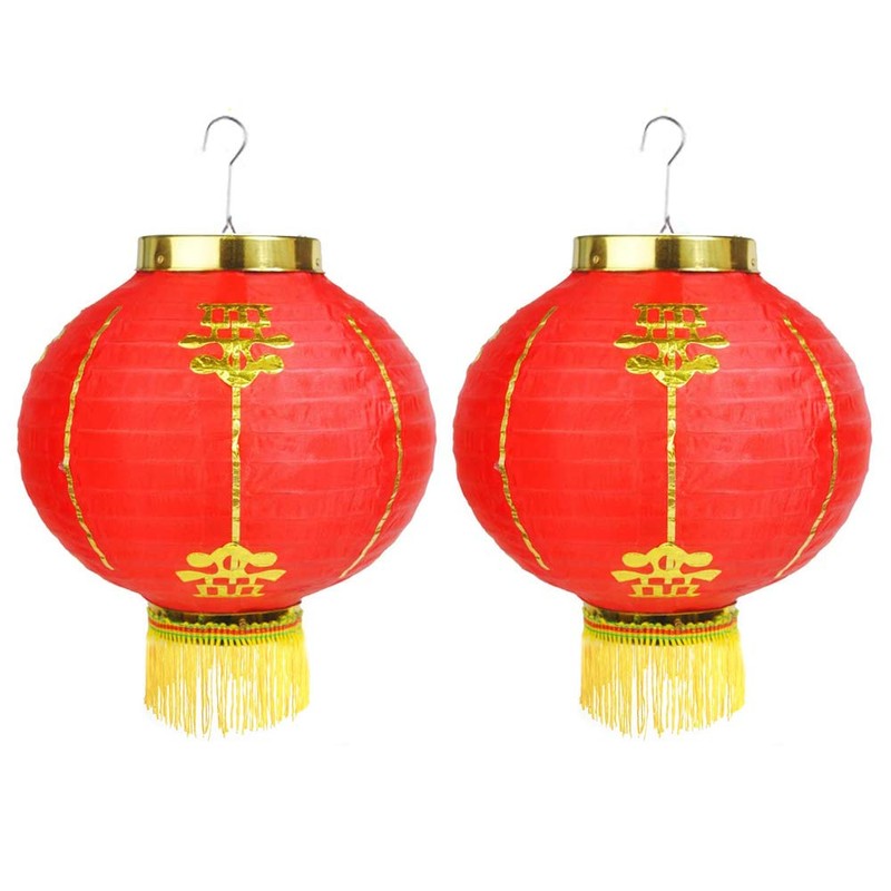 Luxtea Red Paper Lanterns Hanging Decorations for Chinese Spring Festival Celebration (2pcs, 12'' / 2pcs)