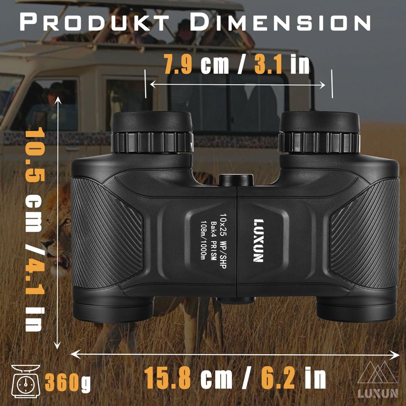 - PREMIUM OPTICS WITH 10X MAGNIFICATION With 10x25 magnification and precise BaK4 PRISM technology, this binoculars provide clear, bright and sharp images - perfect for bird watching, hiking, hunting or sporting events.