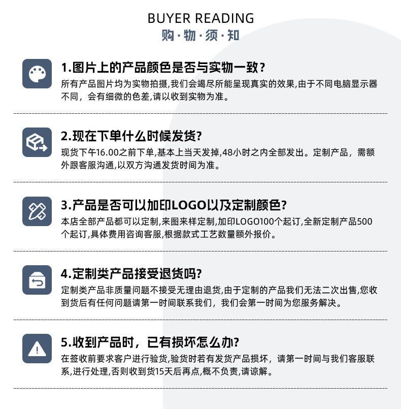 Please read our policy carefully before making a purchase.
