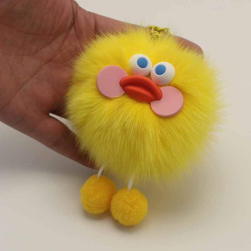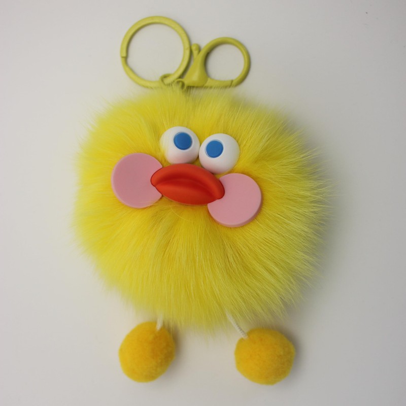 Luxurious Fox Fur Cartoon Character Keychains (Red Face, Yellow)