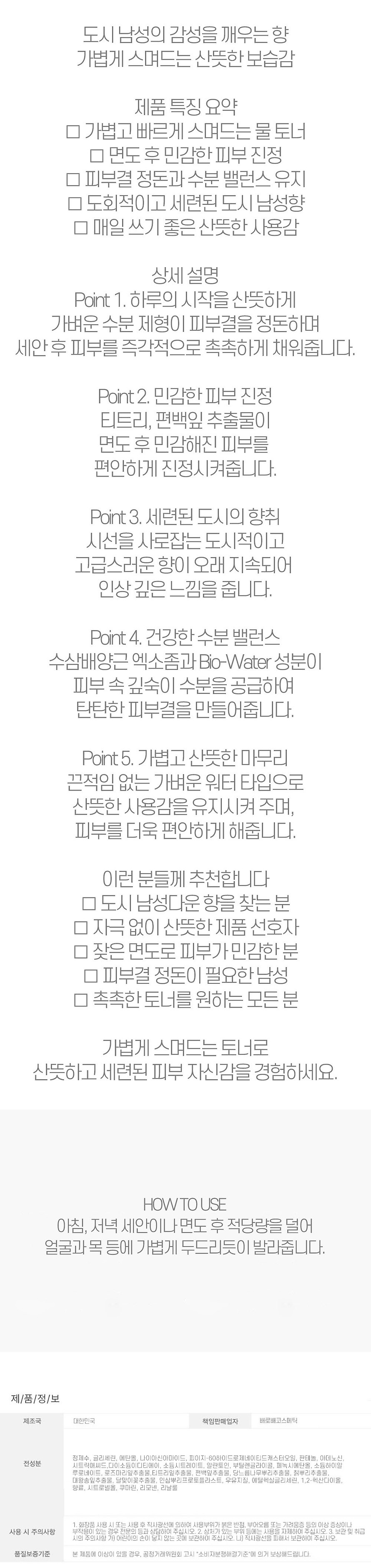 고급스러운 향 오래지속 인상 깊은 남성 토너 150ml