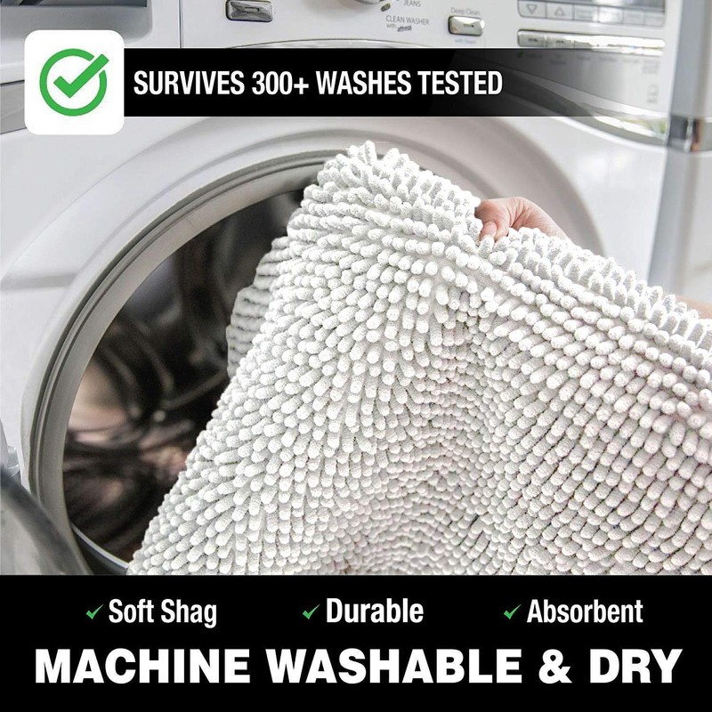 - MACHINE WASHABLE: Both the chenille microfiber and the PVC layer used in the mat are designed to be machine washable to get stains out. unlike other brands where the rubber backing tends to wear and peel off after a number of washes. For best results, wash on cold and lightly tumble dry on low heat. GUARANTEE - Love it or your money back! Life time warranty by LuxUrux. If you are not satisfied with your rug or if you decide that this is not for you, then please do not hesitate and reach out.