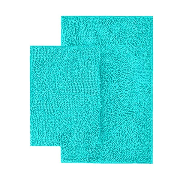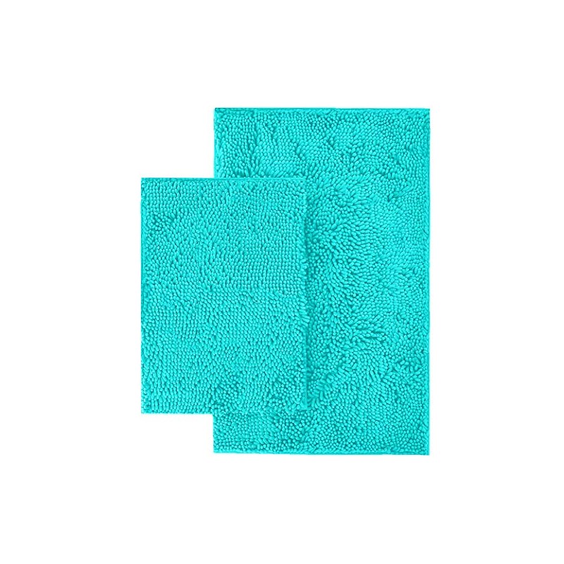 LuxUrux Bathroom Rug SetâExtra-Soft Plush Bath mat Shower Bathroom Rugs,1'' Chenille Microfiber Material, Super Absorbent (Rectangular Set, Spa Blue)