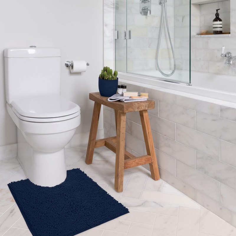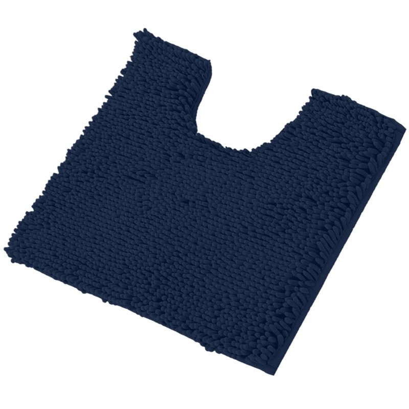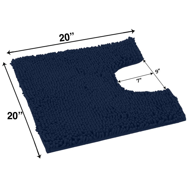 LuxUrux U-Shaped Toilet Bath Mat – Absorbent & Non-Slip Contoured Rug for Toilet Base, Plush Chenille, Machine Washable (20 x 20 inch, Navy)