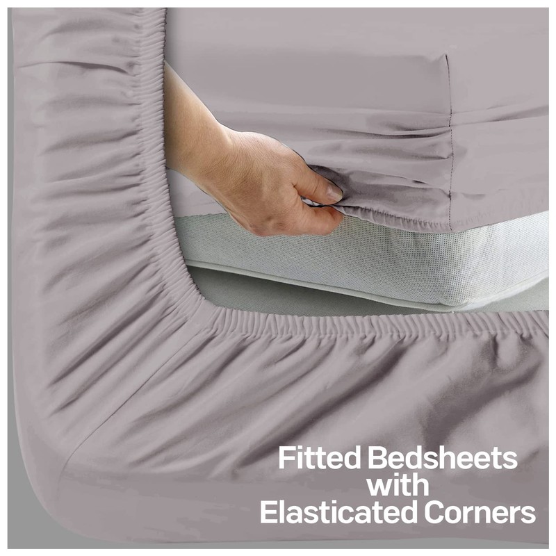 Luxury Elasticated Corner Deep Fitted King Size Sheet, Non Iron Extra Deep Breathable King Size Fitted Sheets, Ultra Supersoft Polycotton Plain Dyed Bed Sheets, Grey
