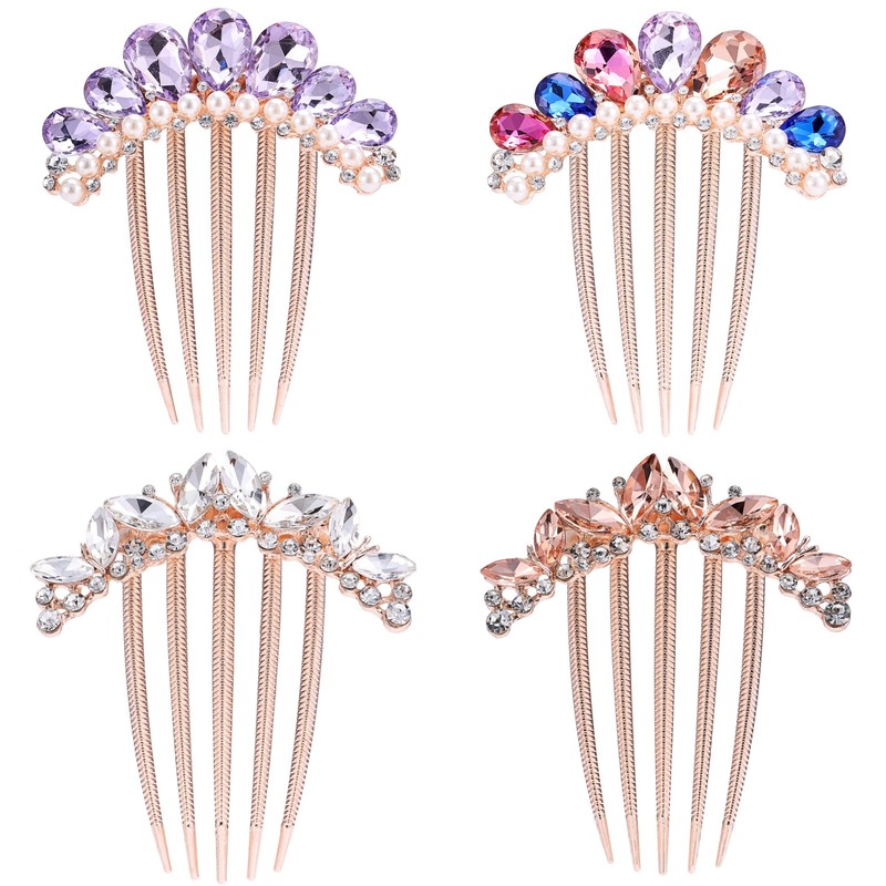 - SET OF 4 PIECES: You will receive rhinestone flower hair side combs in 4 different colors including purple, champagne, white and multicolor. Different colors provide more choices to match your outfits