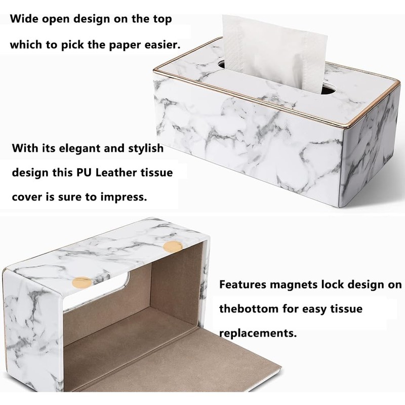 1 × PU Leather Tissue Box Holder (White Marble with Gold Edge)
