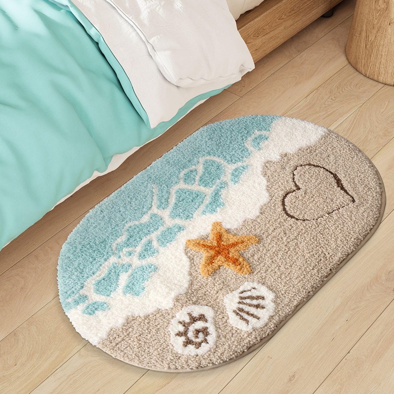 Luxury Microfiber Bath Mat, Extra Soft and Absorbent Bathroom Carpet, Wave & Beach Design, Non-Slip Plush Shaggy Rug, Machine Wash Dry, Rug for Bathroom and Bedroom Floor, Tub and Shower, 40x60cm