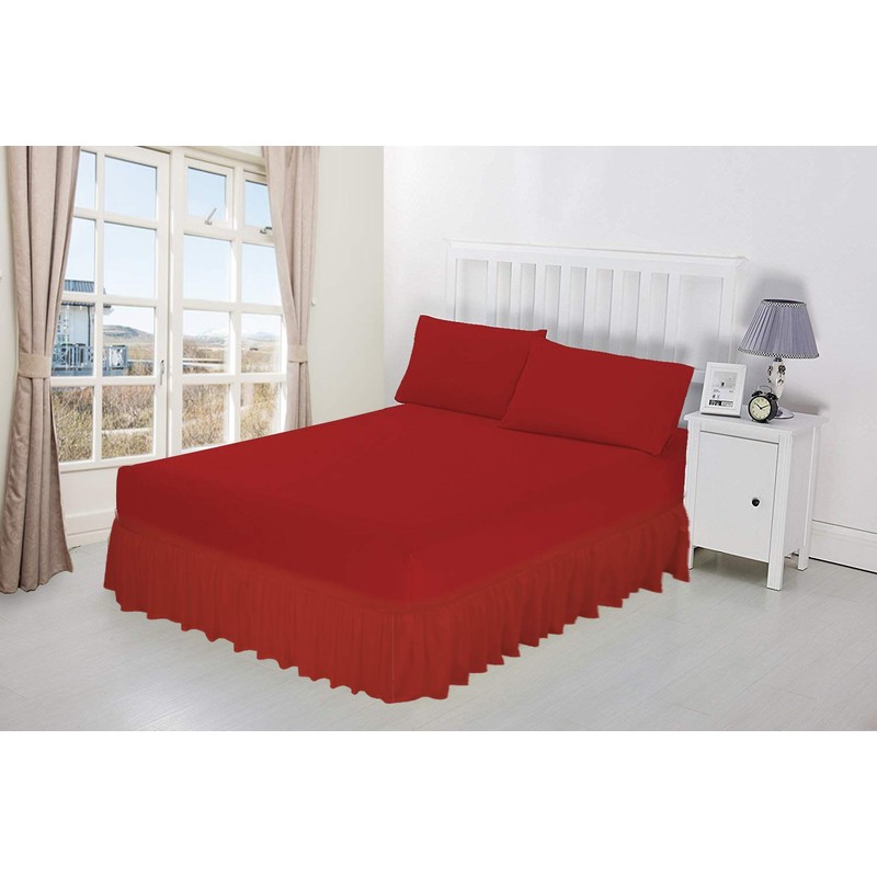 Luxury Percale Frilled Valance Fitted Sheets 14 Colours in Single, Double, King, Super King (Double, Red)