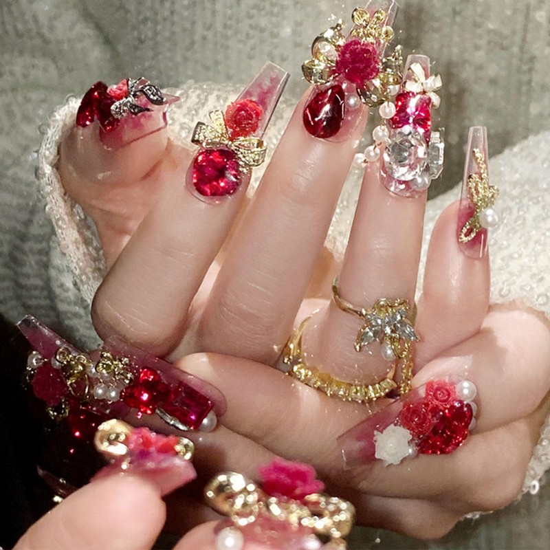 - The elegant shape design of the glue on nails makes you eye-catching perfect for daily family gatherings, weddings, proms, parties, dates and other special occasions. Also an ideal gift for birthdays, Valentine's Day, Halloween, Christmas, etc.