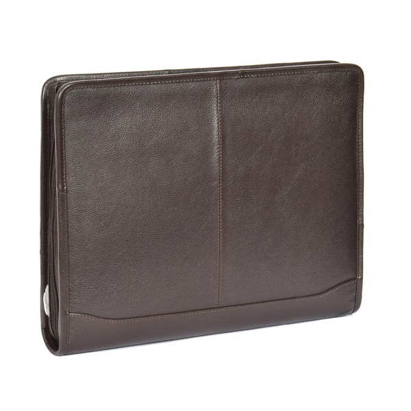 Luxury Real Leather Zip Around Folder File Detachable Metal Ring Binder Braga (Brown)