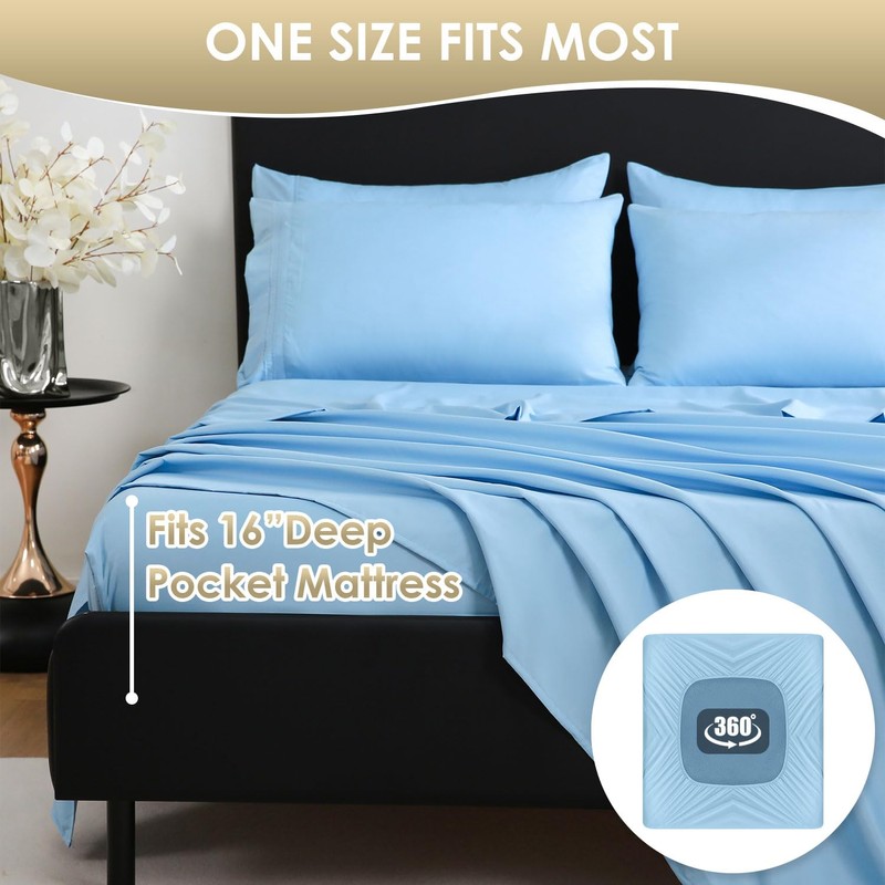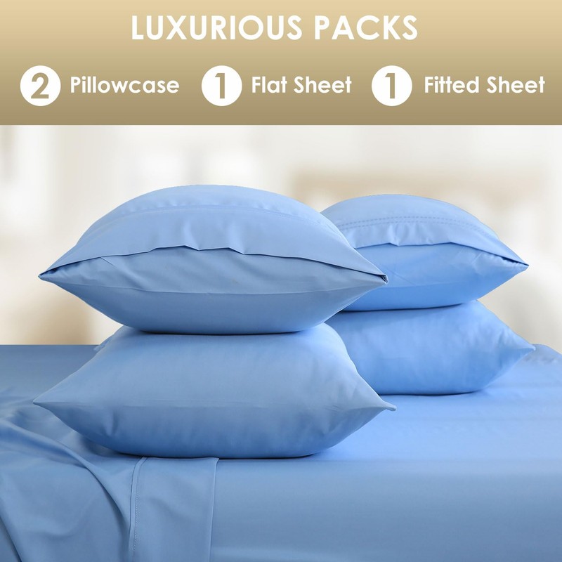 • Complete Bedding Sheet Set: 4pcs for Twin sheets set, 6pcs for Full/Queen/King/Cal King. Includes 1 flat sheet, 1 fitted sheet, and 2/4 pillowcases, providing everything you need for your bed.