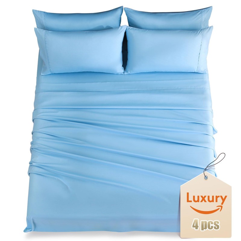 Luxury Silky Soft Bed Sheet Set, 4 Piece,Twin XL Size, Fits 16 inch Deep Pocket Mattresses, Wrinkle Free & Breathable Cooling, Sky Blue Bedding Sheets (Fitted Sheet, Flat Sheet, Pillowcases)