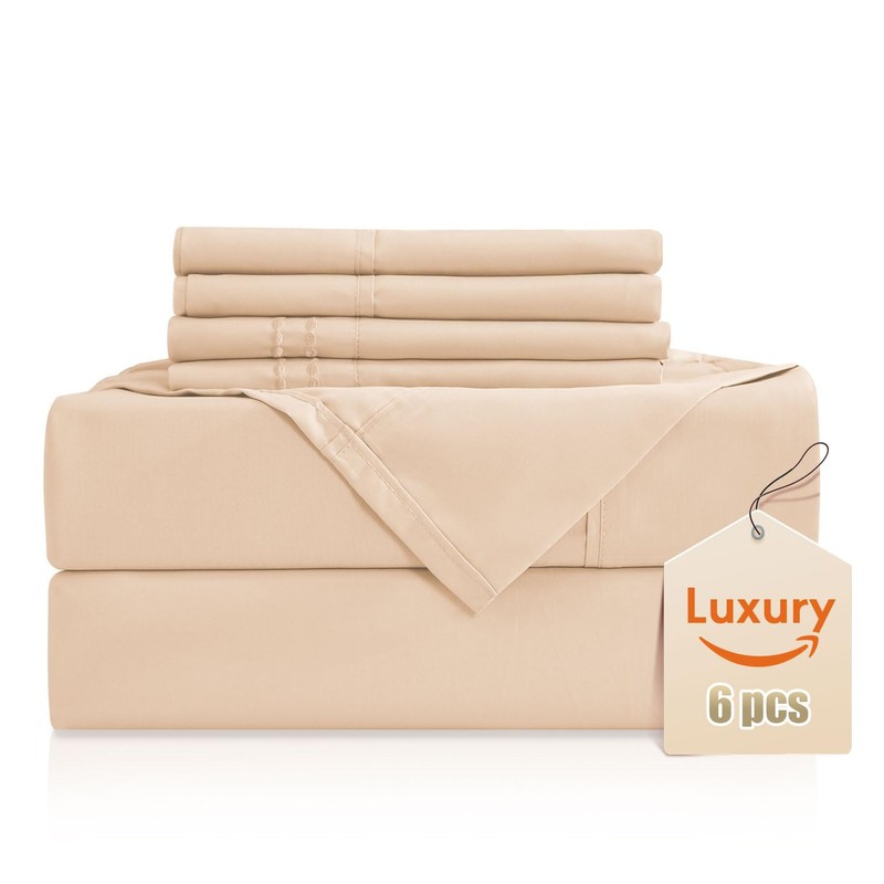 Luxury Silky Soft Bed Sheet Set, 6 Piece,Full Size, Fits 16 inch Deep Pocket Mattresses, Wrinkle Free & Breathable Cooling, Champagne gold Bedding Sheets (Fitted Sheet, Flat Sheet, Pillowcases)