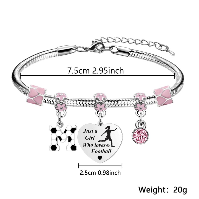 - FOOTBALL GIFT FOR GIRLS - This initial football bracelet with "Just a girl who loves football." This is the perfect gift for a girl or women who loves football and she will be pleasantly surprised when she receives this bracelet.