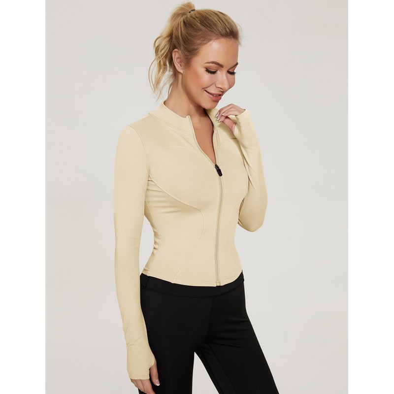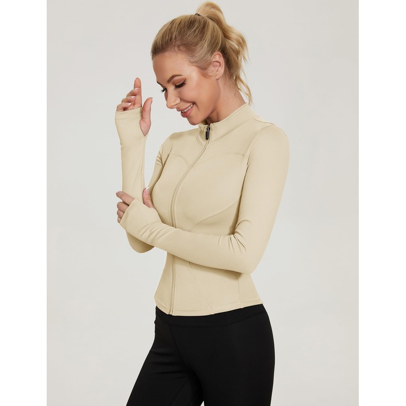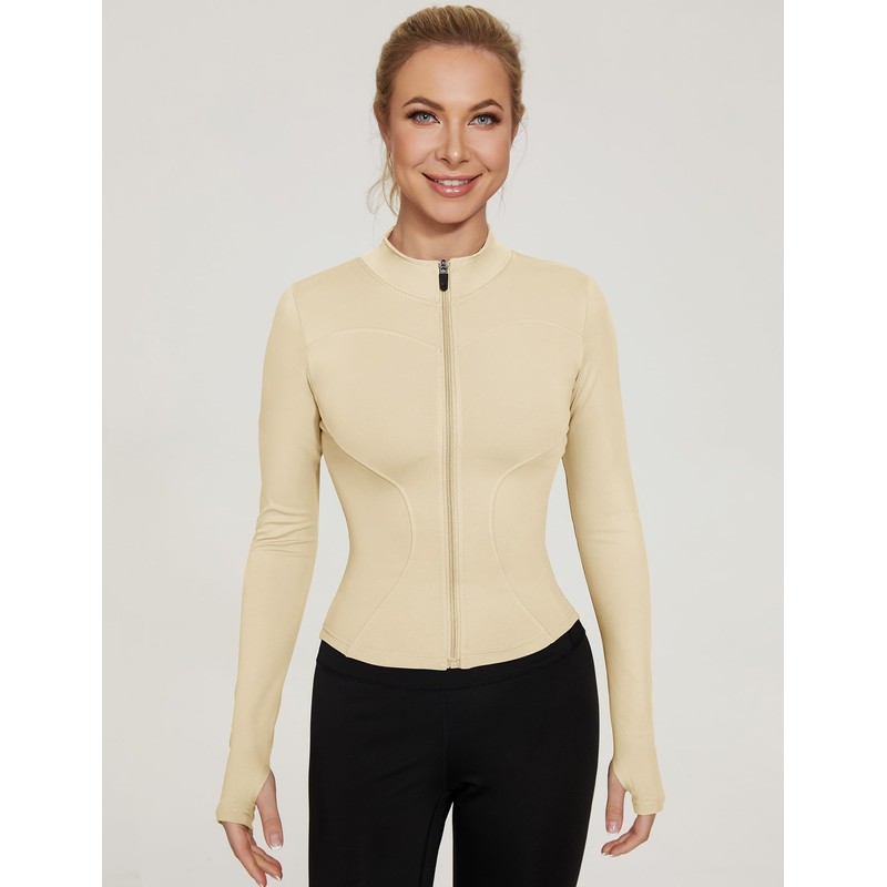 LUYAA Athleitc Zip Up Jackets Long Sleeve Workout Tops Lightweight Crop Fall Active Wear Work Out Sets Apricot L