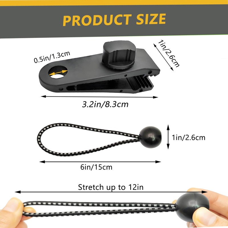 - Package Included: 18 x tarp clips + 18 x ball bungee cords