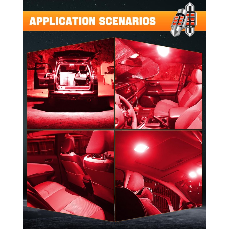 - Super Bright & Low Power:Set of 2 bulbs,800K,Red DE3175 2835 6-EX Chipsets LED Bulbs,190 Lumens&2.7W Per Bulb,Much Brighter Than Original Bulb