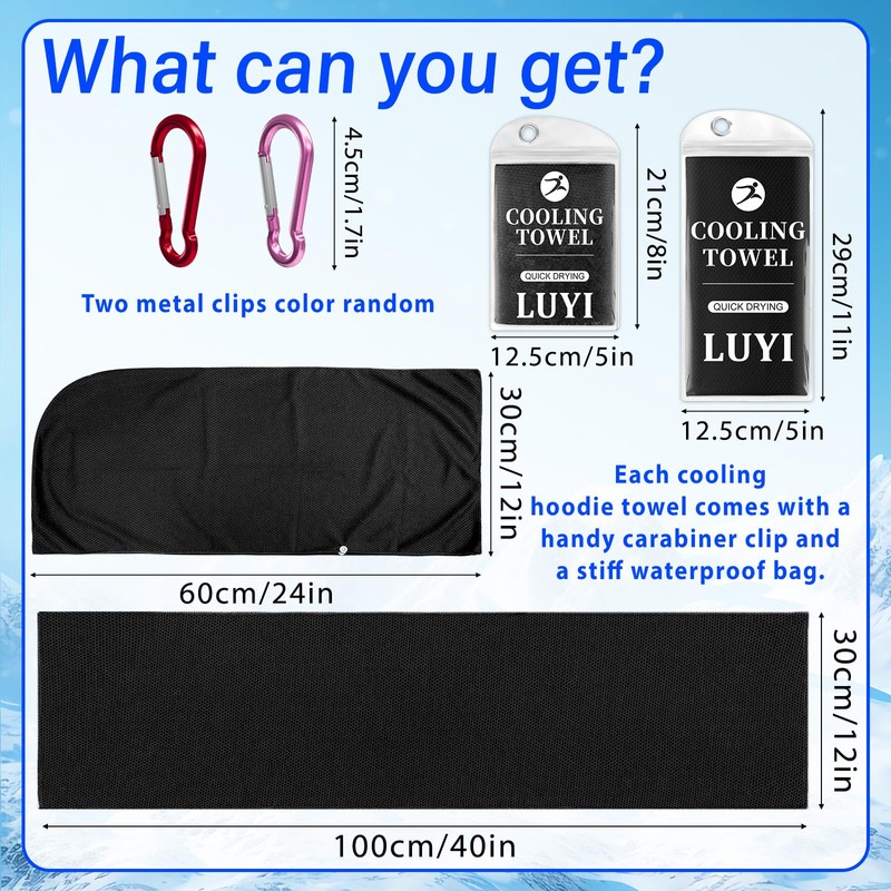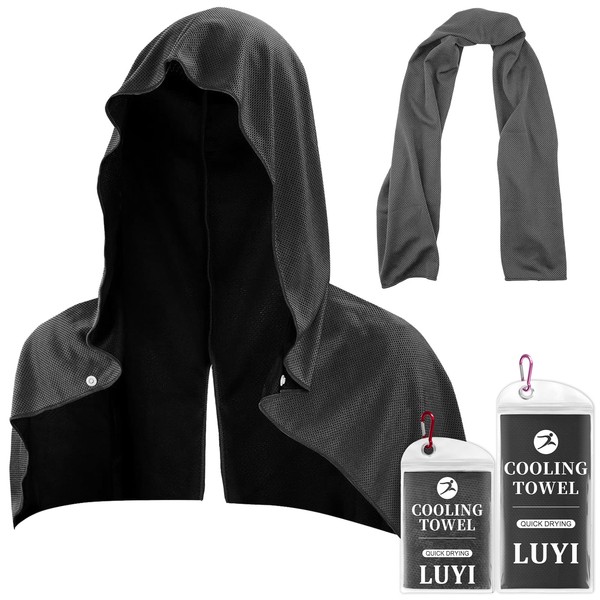 LUYI 2 Pack Cooling Hoodie Towels, Instant Cooling Towels for Neck and Face, Ice Towel for Hot Weather Microfiber Work Out, Yoga, Running-Royal(Black)